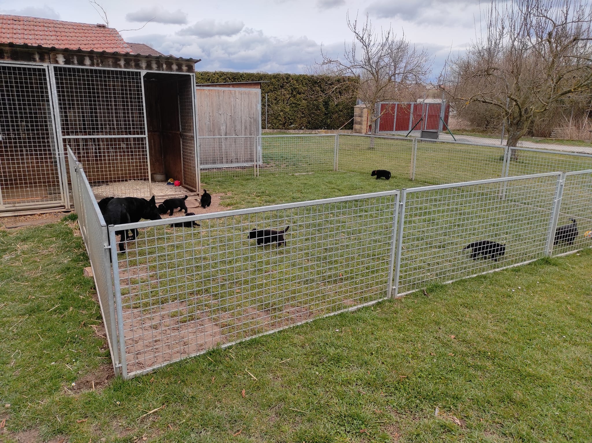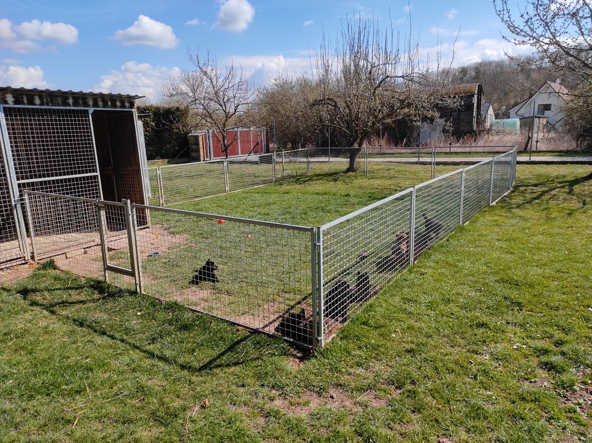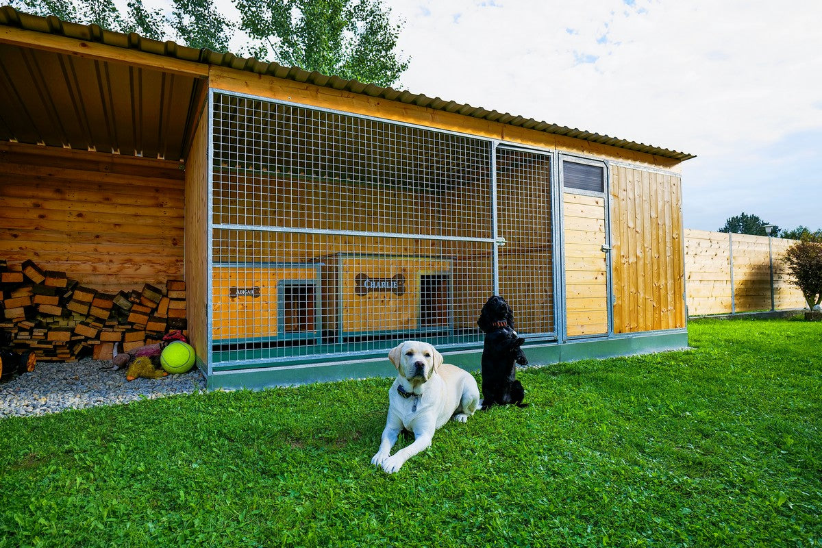 Ohrádky lze snadno umístit ke kotci a vytvořit tak prostor, kde mohou psi volně přecházet mezi kotcem a ohrádkou. Přestože k tomu nejsou součástky součástí balení, je to skvělá možnost pro zákazníky, kteří chtějí rozšířit prostor, například pro štěňata nebo větší rodinu psů.